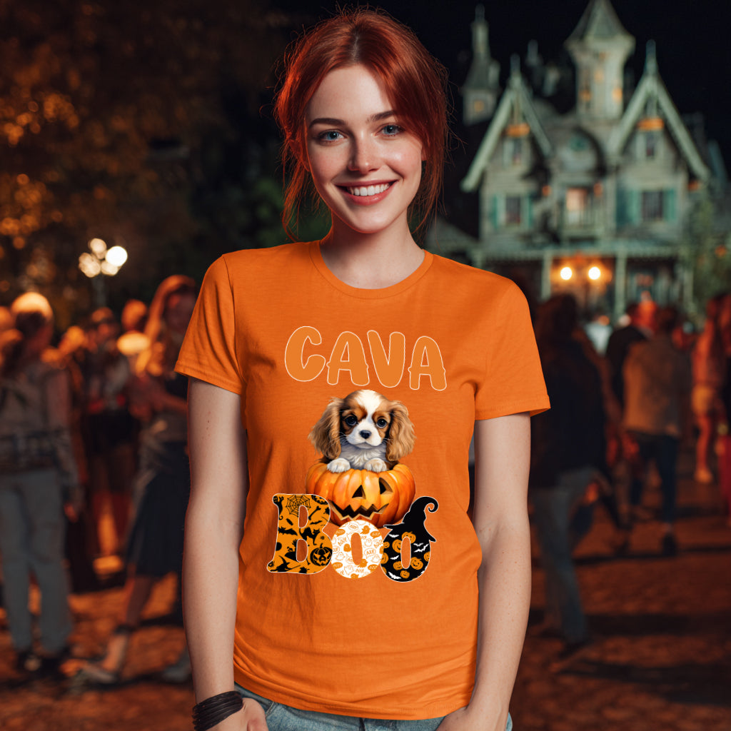 Get ready for some pumpkin spice pup-titude! Our "Can-a-boo" tee stars an irresistibly cute Cavalier King Charles Spaniel puppy peeking gout of a carved Jack-o-lantern with a look of pure cozy mischief, this little fur ball turns spooky season into snuggly season.